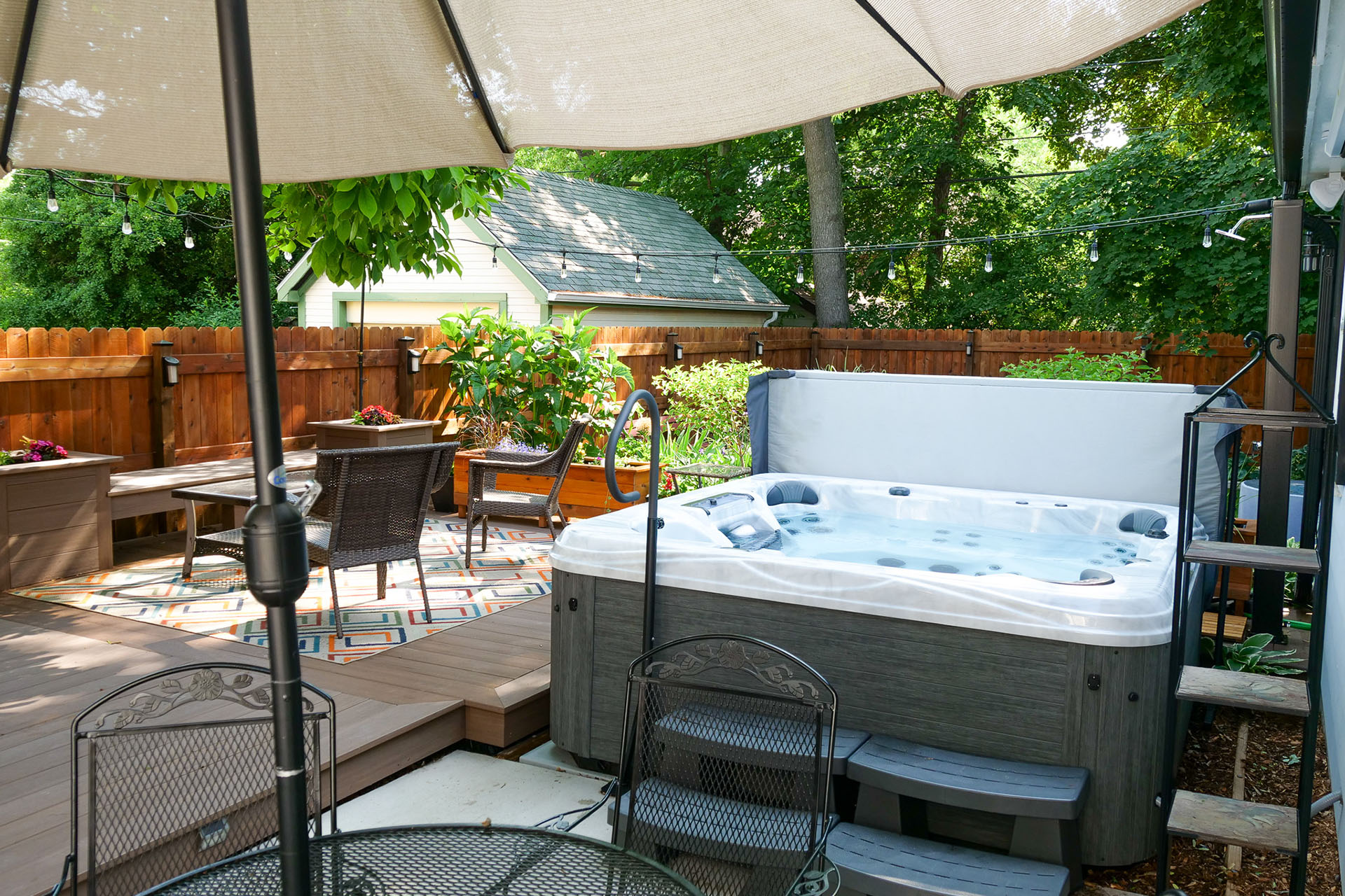 For 2022 we’ve added a brand new hot tub and outdoor deck, along with outside Bluetooth speakers. The kitchen has also gone through a face lift with better lighting, cooking vent and a new color scheme.